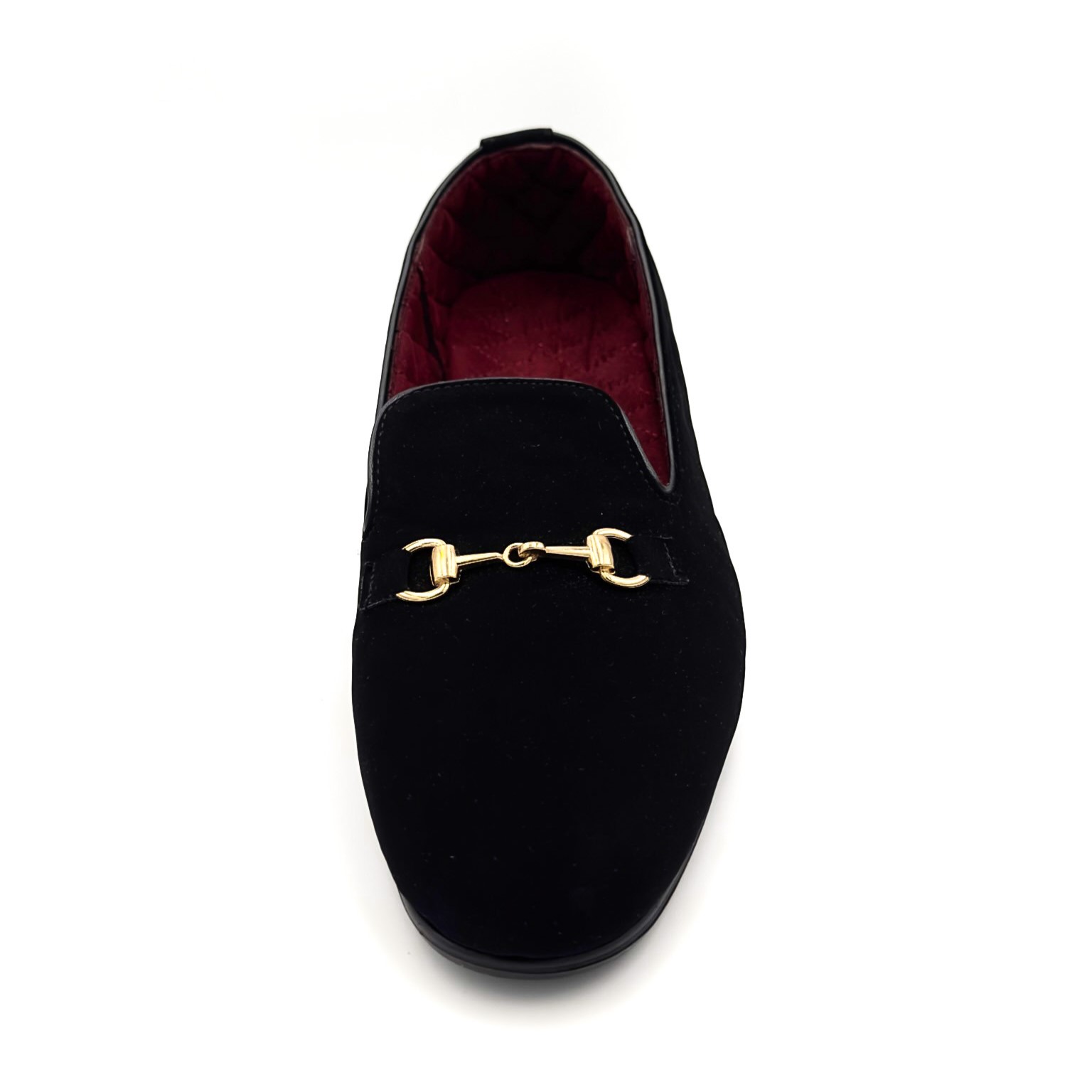 Calzado de color negro con herraje dorado de alta calidad. 100% hecho a mano.