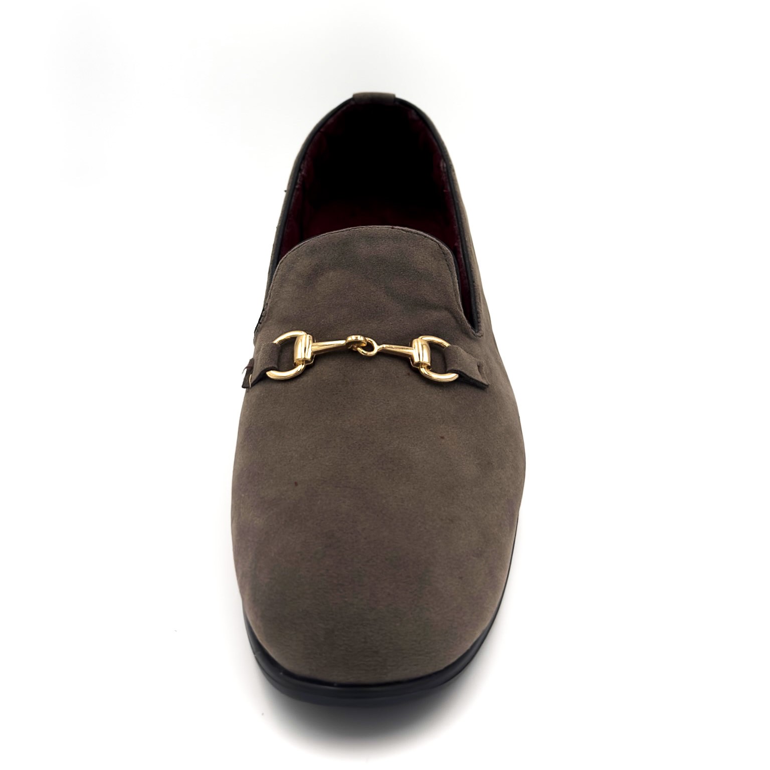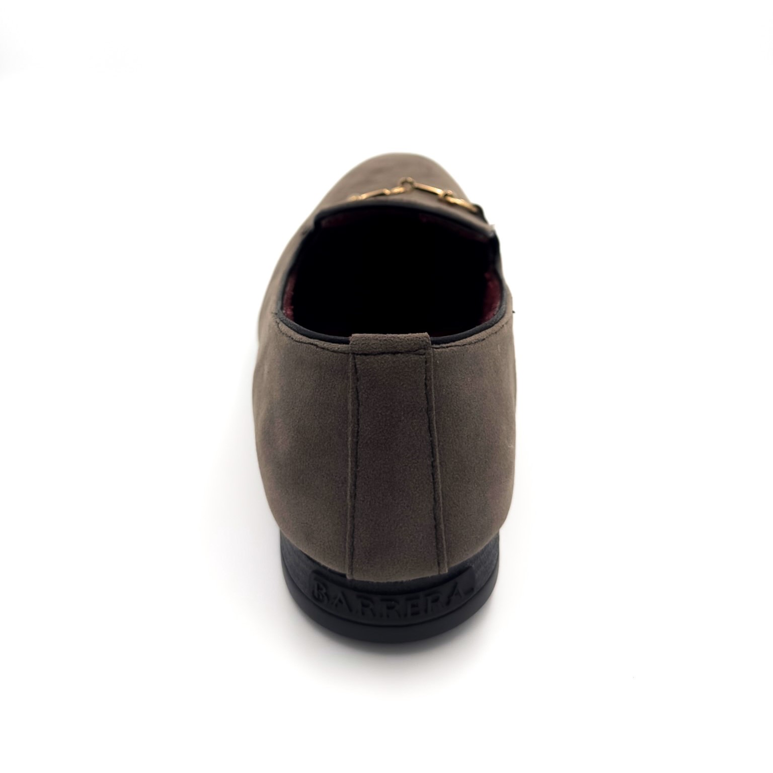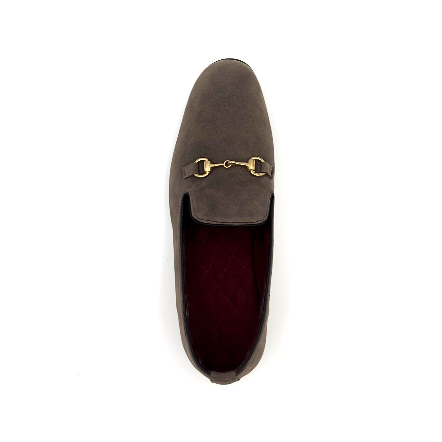 Calzado de terciopelo color gris con herraje dorado de alta calidad. 100% hecho a mano.